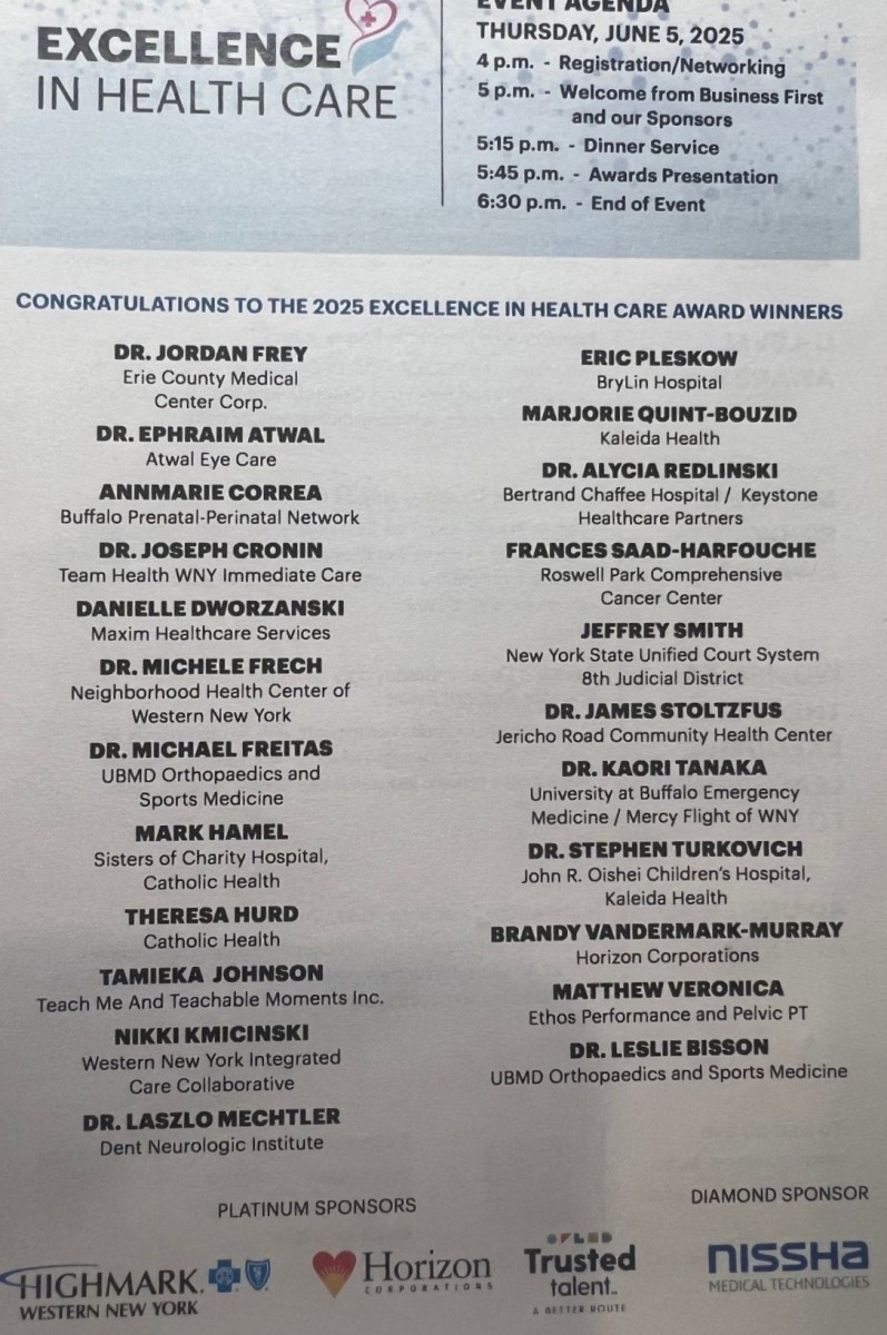 We are grateful for Eric’s leadership and proud to see him recognized among Western New York’s finest health care professionals. Congratulations, Eric!